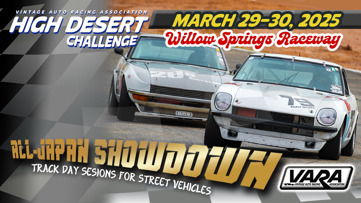 Calling all Vintage Racers from the 70s, 80s, 90s, 2000's -- and current VARA racers -- all classes are invited. The spring time High Desert Challenge sponsored by K&N Filters, is what started it all for VARA! Featured events will be, VARA T.A.B.S. 2.5 Challenge, FF Challenge and of course all our regular run groups.We will have a speical Japanese Race at the end of Saturday.