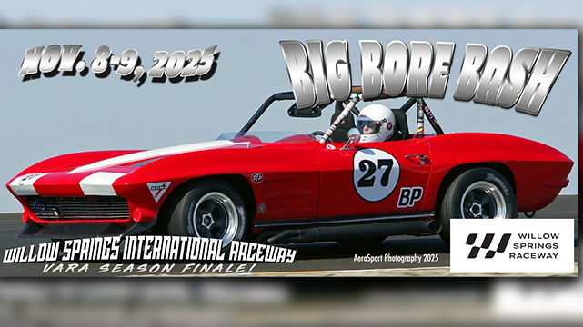 It is with great pleasure that the Vintage Auto Racing Association invites you to the “Lucas Oil Big Bore Bash”. The main feature will be VARA’s Big Bore Pursuit Challenge Ford vs. Chevy Challenge. Last years staggered start gave all entrants a chance to shine and we expect the same for BBB 2025